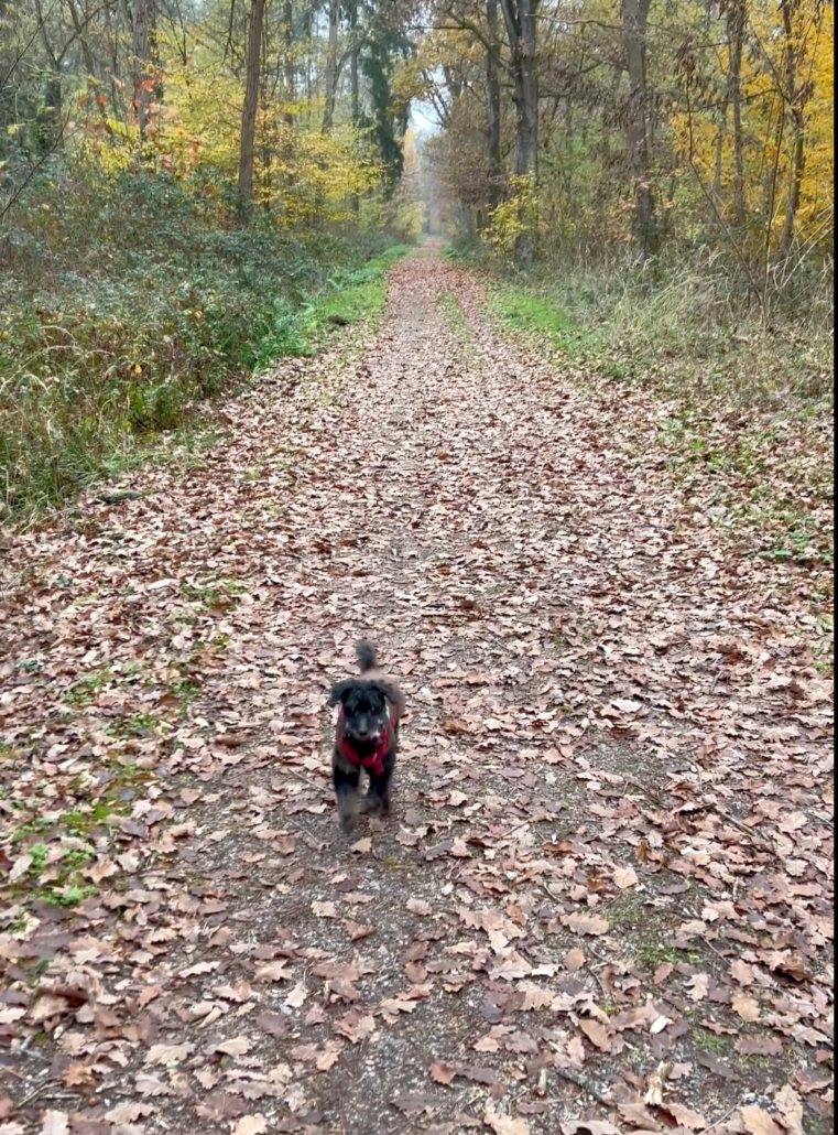 Bereits nach 3-4 Wochen gab es eine große Veränderung beim Gassigehen – das war ja ein richtiger Kampf geworden – jetzt hoppelt er wieder durch den Wald. (siehe Video im Anhang)