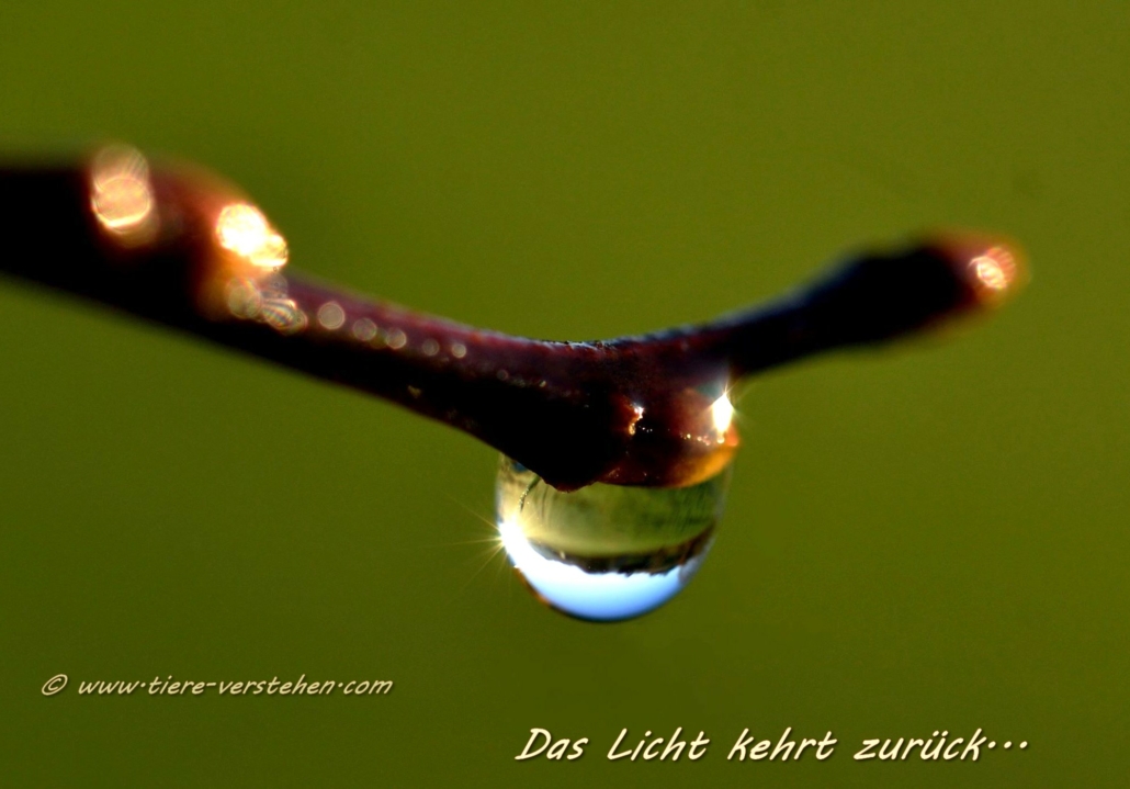 Ja, das Licht kehrt zurück, das die Dunkelheit besiegt! Und ganz sicher ist dies gerade in diesen Zeiten auch für uns das Sinnbild der HOFFNUNG! Es ist diese Kraft, die sich in uns regt, wie in der Natur, die endlich wachsen will, wie die Samen in Mutter Erde. Egal, wie widrig die Umstände auch noch sind… das Neue ist nicht mehr aufzuhalten!